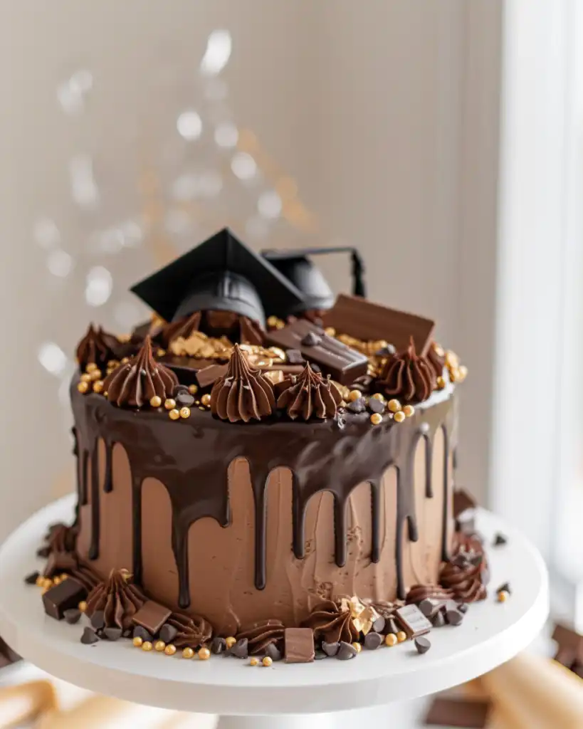 Graduation Chocolate Cake with Ganache is the ultimate celebration dessert because it looks incredibly impressive but is actually achievable for home bakers. The rich chocolate flavor appeals to almost everyone, making it a crowd-pleaser at graduation parties. It’s elegant and sophisticated enough to match the significance of graduation day, yet customizable to reflect the graduate’s personality and achievements. Whether you’re celebrating high school, college, or any other graduation milestone, this cake creates a memorable centerpiece that tastes as amazing as it looks.